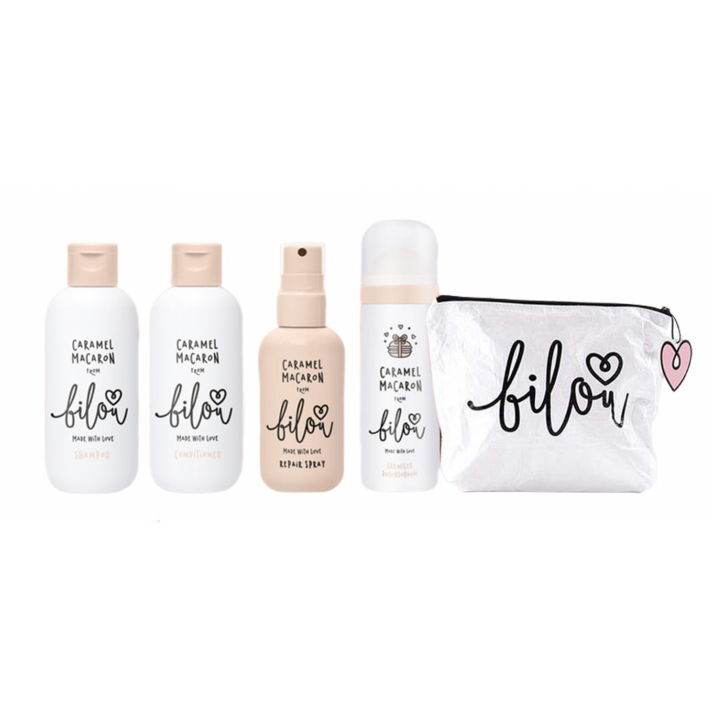 Лімітований подарунковий набір Bilou Caramel Macaron з ароматом свіжоспечених макарун з ніжною рожевою карамельною начинкою і нотками кориці.