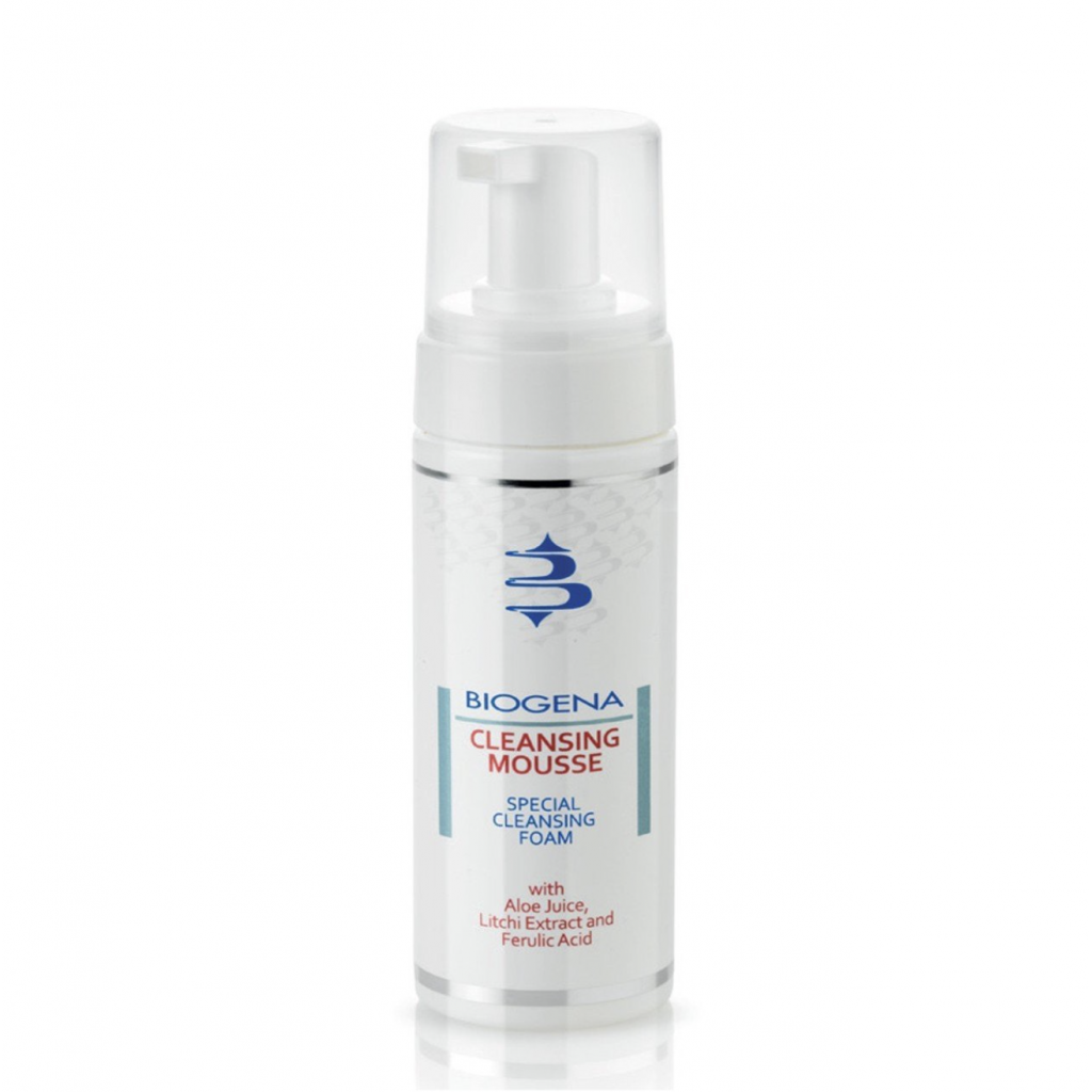 Biogena Cleansing Mousse - очищуючий мус для обличчя. Очищає, зволожує, заспокоює. Ніжна пінка-мус на основі соку алое, екстракту лічі та ферулової кислоти. У синергії зі спеціальними кремами Biogena підвищує рівень зволоженості шкіри, допомагає усунути ознаки гіперчутливості, помітно освіжає колір обличчя, повертаючи сяйво молодості.