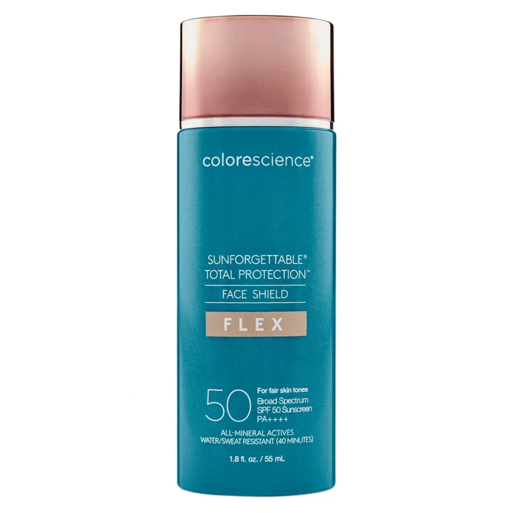 Colorescience Sunforgettable Total Protection Face Shield Flex SPF 50 Light — сонцезахисний крем для обличчя з адаптивними пігментами SPF 50 забезпечує захист від ультрафіолетових променів, вирівнює тон шкіри, надає їй здорового та природного зовнішнього вигляду.