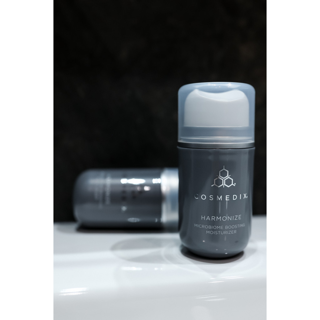 COSMEDIX Harmonize Microbiome Moisturizer - крем для відновлення мікробіома. Це багатофункціональний засіб на основі пробіотичного комплексу. Продукт усуває запальні процеси, нормалізує природний рівень зволоження, вирівнює тон та текстуру шкіри. Поживні пробіотики сприяють зволоженню шкіри, відновлюючи її природний бар’єр, який утримує вологу. Комплекс рослинних, у тому числі, фруктових екстрактів, сприяє захисту від агресивних факторів навколишнього середовища, заспокоює шкіру та при регулярному застосуванні робить більш рівним тон та мікрорельєф. Крем Harmonize завдяки своїм активним інгредієнтам здатний в короткі терміни відновити та підтримати мікробіом шкіри, тим самим запобігти акне та висипу.