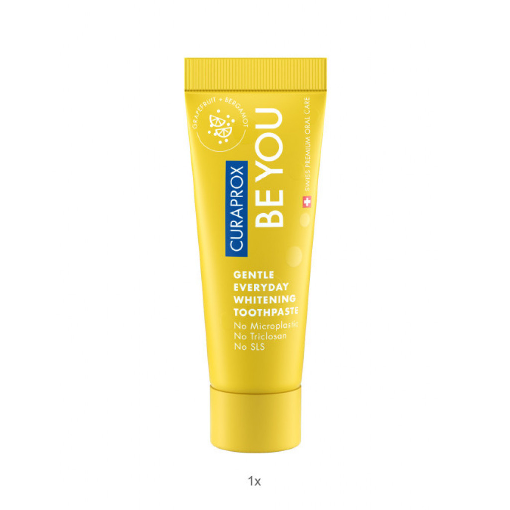 - Curaprox Be you зубна паста 10 мл (соковитий грейпфрут + бергамот): захищає зуби і ясна і піклується про них. Ніжно і ефективно відбілює зуби.