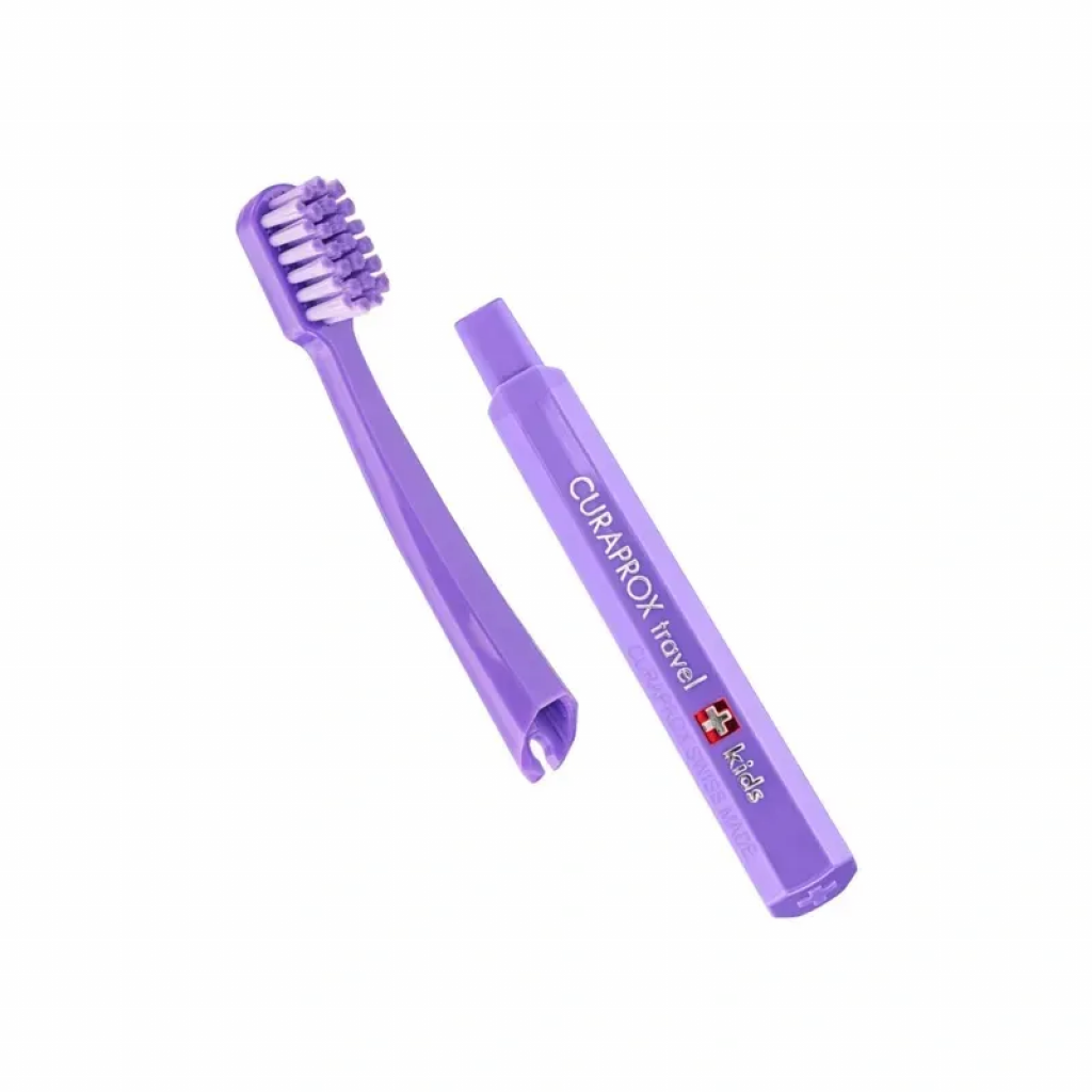 - Складна дорожня щітка CURAPROX Kids – компактна, з ультрам’якою щетиною Curen®, яка дбайливо очищує зубну емаль, не травмуючи ясна.