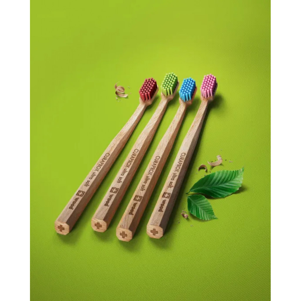 CURAPROX Зубна щітка дерев'яна"ultrasoft" — дерев’яна зубна щітка, яка справді дбає про ваші зуби та ясна, а також про довкілля. Надзвичайно м’яка насадка для щітки з 4440 ультратонкими нитками Curen®, у поєднанні з надтвердою, надміцною деревиною бука екологічного походження.