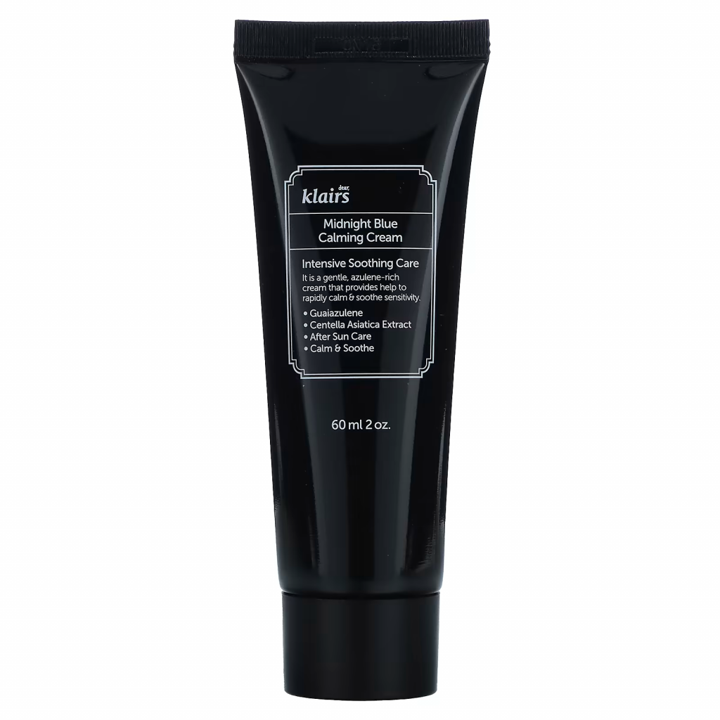 Dear Klairs Midnight Blue Calming Cream 60 ml – заспокійливий нічний крем для обличчя. Ідеально підходить для подразненої та дуже чутливої шкіри. Крем знімає почервоніння та запалення, благотворно працює зі шкірою, яка страждає від куперозу. Інтенсивно зволожує шкіру та покращує колір обличчя за рахунок натуральних екстрактів портулаку, шовковиці, броколі. Активно насичує шкіру, завдяки комплексу масел ши, аргани, жожоба у складі.