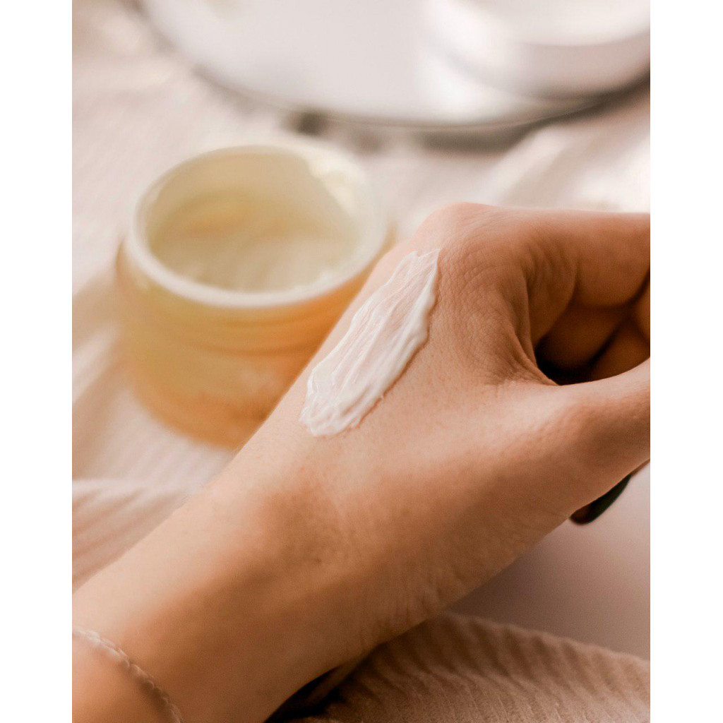 До складу крему входять екстракт прополісу і маточне молочко - природні багатозадачні інгредієнти для підтримки природної краси шкіри. Завдяки унікальному набору вітамінів, мінералів, амінокислот і жирних кислот вони заспокоюють, живлять, а також борються з ознаками передчасного старіння, такими як в'ялість, втрата тонусу, тонкі лінії. Екстракт плодів обліпихи поповнює нестачу жирних кислот в роговому шарі і допомагає зберегти шкіру пружною і підтягнутою.