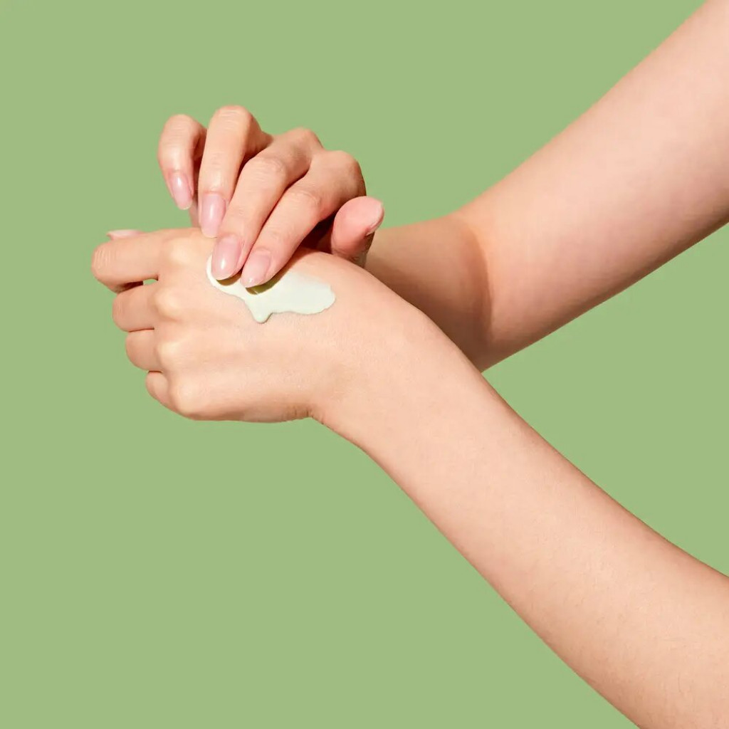 - Санскрін містить зелений пігмент натурального походження, який візуально маскує будь-які почервоніння за принципом колірної корекції. Саме такий відтінок дозволяє легко нейтралізувати прояви розацеа, розширені капіляри, а також почервоніння від прищиків та постакне. Колір обличчя стає більш яскравим, рівним та випромінює здорове сяйво.