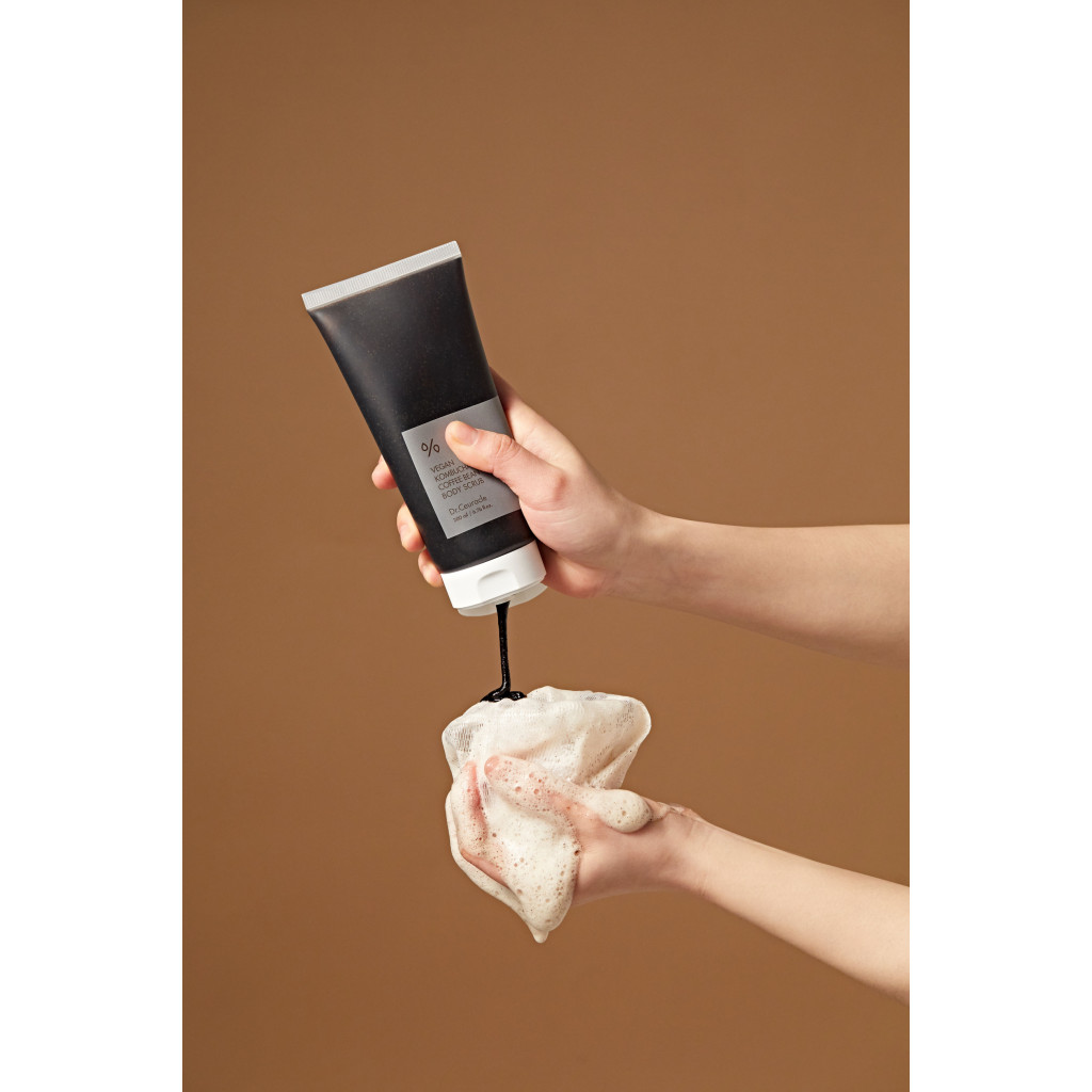 Dr.Ceuracle Веганський скраб для тіла з ферментованим чаєм комбуча та кавою - скраб на основі кави з додаванням ферментованого чаю комбуча допоможе зробити шкіру тіла зволоженою, гладенькою та пружною В результаті використання скрабу поліпшується кровообіг, виводяться токсини, зменшується запалення, і як додатковий бонус, вас огортає розкішний аромат кави! Дрібні частинки меленої кави діють як природній ексфоліатор, видаляючи відмерлі клітини з поверхні шкіри та посилюючи регенерацію, кофеїн стимулює відтік лімфи, зменшує прояви целюліту. Завдяки високому вмісту антиоксидантів кава попереджає запалення, передчасне старіння та збільшує синтез колагену. До складу скрабу також входить цукор – натуральний абразивний компонент, що підходить навіть для чутливої шкіри, оскільки його кристали мають негострі краї. Також, цукор є чудовим зволожувачем та натуральним джерелом гліколевої кислоти, яка руйнує зв’язки між ороговілими клітинами епідермісу та стимулює їх оновлення.ь Пробіотичні властивості комбучі (або чайного гриба) допомагають підтримувати фізіологічний слабокислий рівень pH шкіри, підвищують її імунітет для боротьби з токсинами та бактеріями із зовнішнього середовища. Екстракт лимонника підвищує пружність та еластичність, олія з насіння соняшника захищає від втрати вологи та відновлює ліпідний бар’єр.