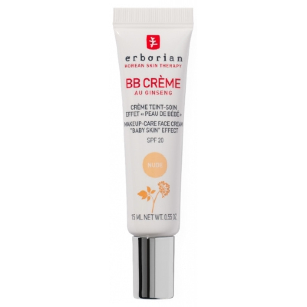 Erborian BB Creme Nude 15 ml - багатофункціональний крем 5 в 1. Легка, шовковиста, тануча текстура огортає шкіру м’якою вуаллю, приховує недосконалості і створює ефект природньо бездоганної шкіри.