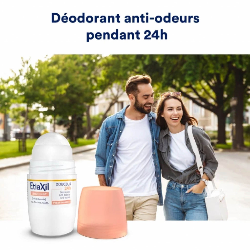 Кульковий дезодорант Etiaxil «Захист 24 години» з ніжним цитрусовим ароматом розроблений для щоденного використання, ефективно нейтралізує неприємні запахи протягом 24 години, не блокуючи при цьому потовиділення, підходить для всіх типів шкіри, навіть для самої чутливої.