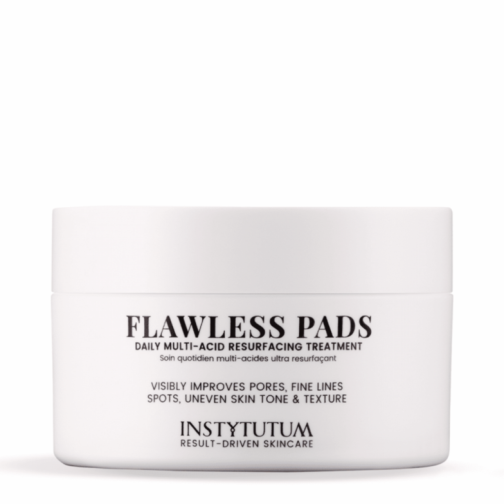 Instytutum Flawless Pads - подушечки з кислотами для глибокого відновлення шкіри. М’які подушечки з кислотами, що гарантують помітні результати. Ідеально підходять тим, хто хоче трансформувати текстуру шкіри. Потужний кислотний коктейль освітлює шкіру, зменшує пори, бореться з гіперпігментацією й наслідками контакту із сонцем, коригує дрібні складки та відновлює колаген для підвищення еластичности шкіри.