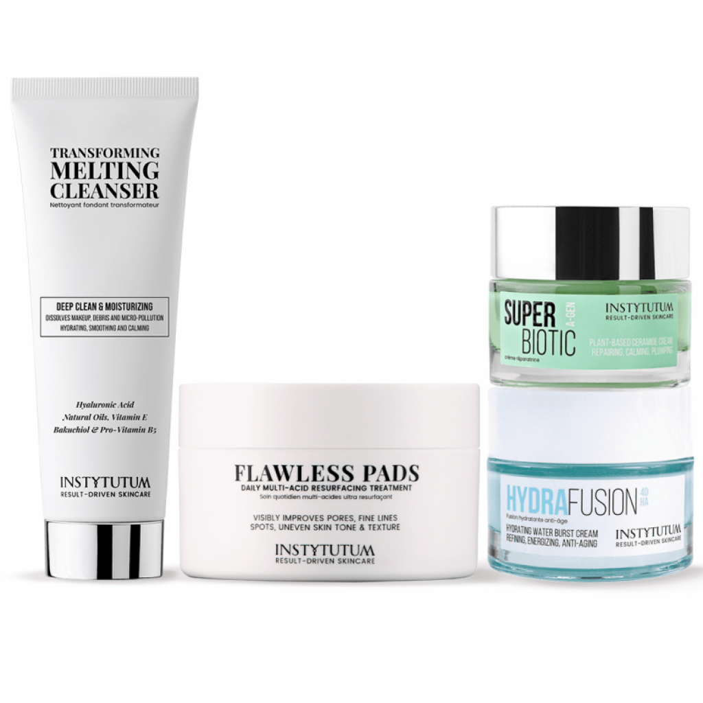 Програма включає чотири продукти. Вони ефективно вирішують такі проблеми, як: сухість шкіри, подразнення та видимі ознаки старіння, а також тьмяність шкіри та нерівний тон.