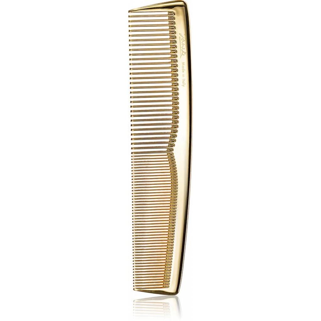 Janeke Beauty AU803 — гребінець золотий довгий з подвійними зубчиками. Належить до лімітованої «золотої» колекції бренду та має хромоване покриття, завдяки чому чинить антистатичний вплив на волосся. Його можна використовувати як для розчісування пасом будь-якого типу, розчісування локонів у зачісці для надання текстури, так і для нанесення гелю або інших стайлінгових засобів!