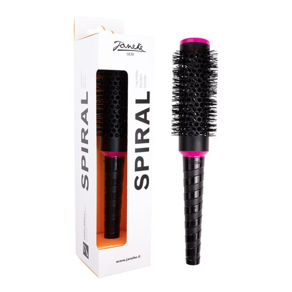 Кругла щітка для укладання Janeke Spiral стане відмінним вибором для домашнього використання та салонів краси. Компактні розміри та стильний дизайн роблять її зручною для подорожей та щоденного застосування.