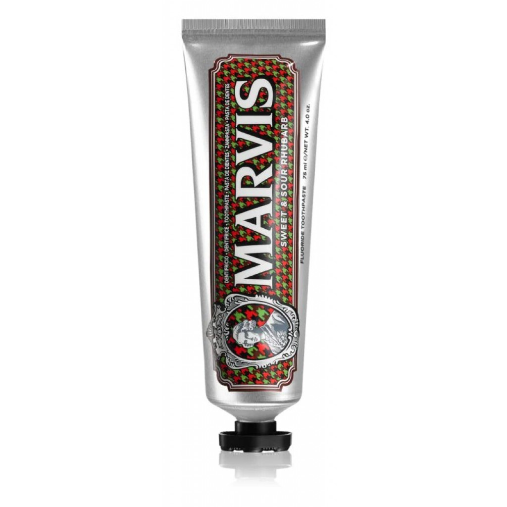 Marvis Dentifrice Sweet & Sour Rhubarb - зубна паста "Кисло-солодкий ревень". Перетворіть рутинну чистку зубів в приємне заняття! Кожен продукт Marvis - це поєднання всіх переваг ефективної зубної пасти і незвичайного смаку. А ще вас обов'язково порадує неймовірно стильний дизайн тюбиків. "Солодкий ревінь" - паста з нотками м'яти, ментолу і терпкими інтонаціями ревеню. Вона ретельно очистить зубну емаль від нальоту і подарує диханню тривалу свіжість.