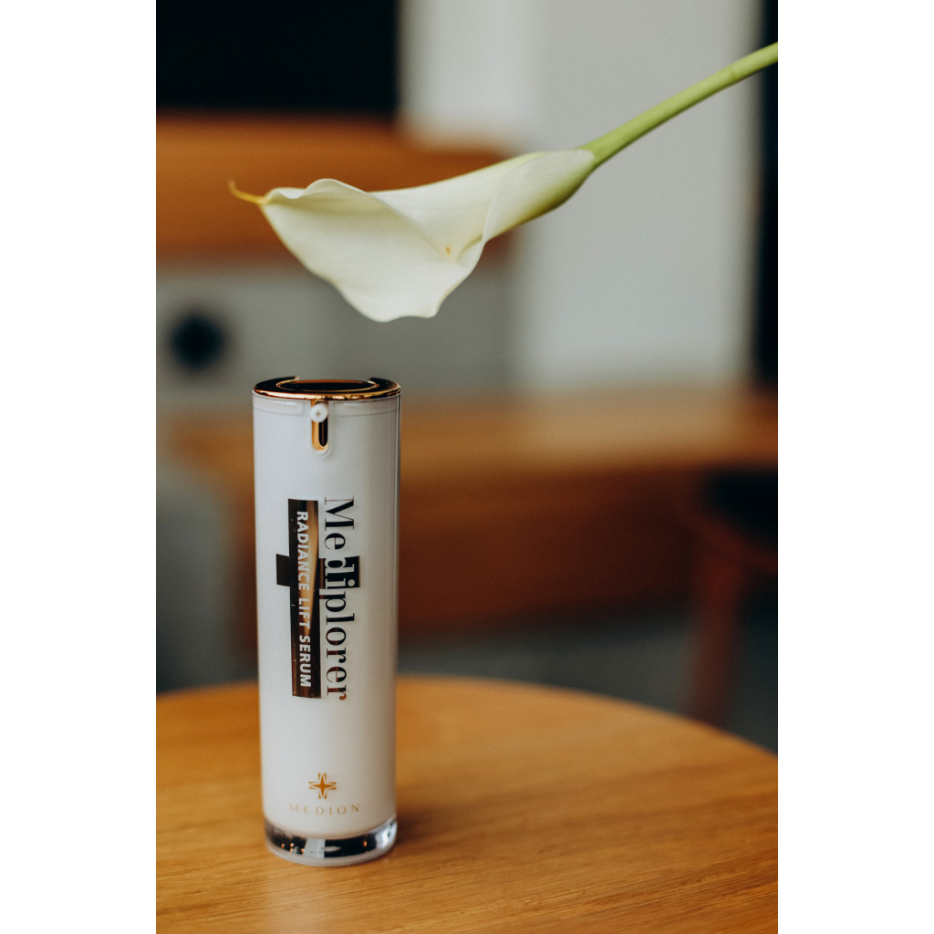 Mediplorer Radiance Lift Serum - активна сироватка, насичена компонентами у високій концентрації з легкою і ніжною текстурою. Вона надає шкірі шовковистості, пробуджує природне сяяння, забезпечує відчуття комфорту та зволоженості.