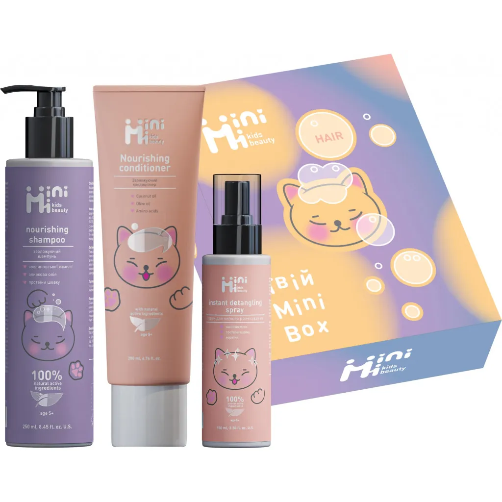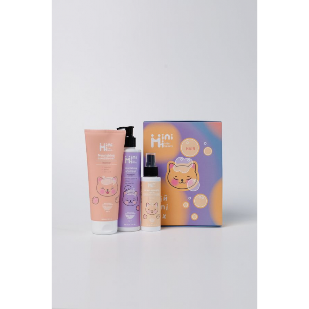 Міні-бокс “Набір для волосся” — набір для волосся, який стане чудовим подарунком для дівчаток та хлопців, які тільки починають цікавитися доглядом за собою. Це допоможе виховати звичку піклуватися про себе правильно і безпечно. Набір для волосся включає основні засоби для щоденного догляду за шкірою голови та волоссям.