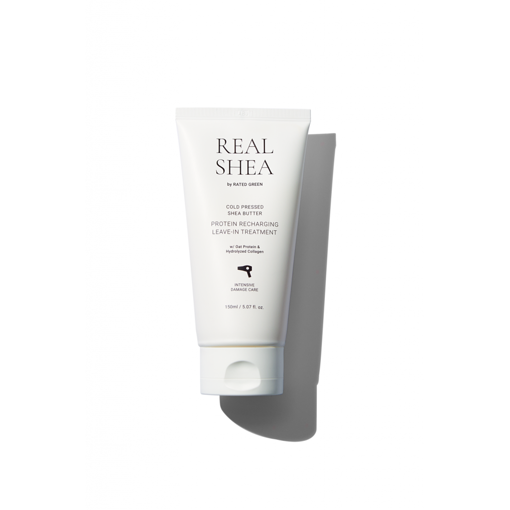 Rated Green Real Shea Gold Pressed Shea Butter Leave-in Treatment - термозахисний відновлюючий крем для волосся з маслом ши. Завдяки спеціальній рецептурі засобу, яка містить органічне масло ши холодного віджиму, вівсяний білок та колаген, цей інтенсивний незмивний засіб пом'якшує та захищає сплутане та пошкоджене волосся відразу після нанесення.