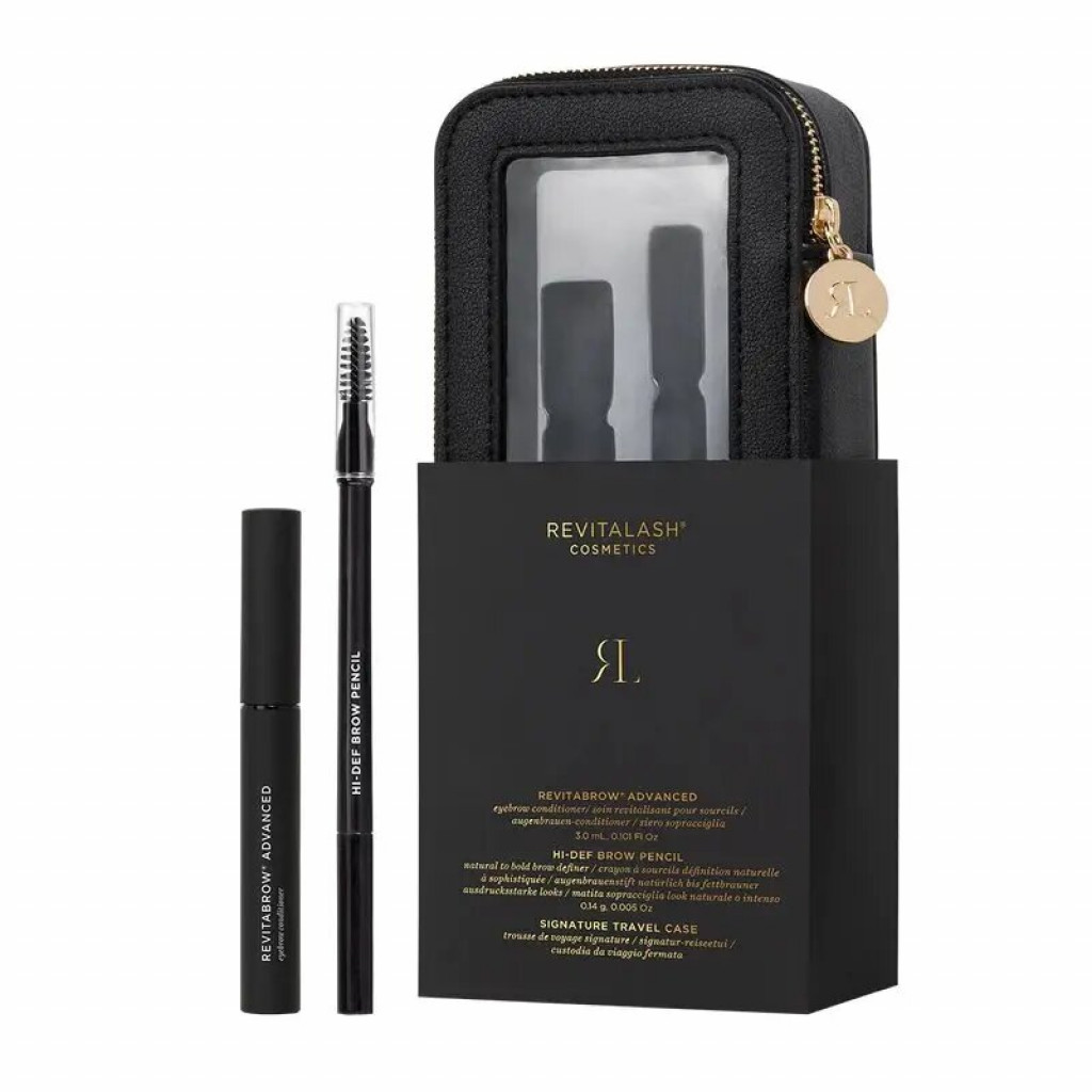 Revitabrow Brow Advanced Black Friday Collection - лімітований набір для брів, до якого входить розроблена лікарями повнорозмірна сироватка для брів, а також два безкоштовні подарунки: повнорозмірний олівець для брів та фірмовий дорожній футляр. Отримайте всі три елементи першої необхідності за ціною однієї сироватки!