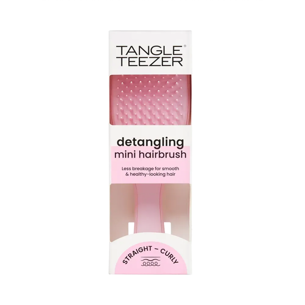 Tangle Teezer The Ultimate Detangler Mini – міні-формат знаменитої моделі The Ultimate Detangler. Запатентовані дворівневі зубчики дбайливо та швидко розплутують вологі пасма, а також рівномірно розподіляють маски та бальзами по волоссю. Завдяки зменшеному розміру щітку зручно брати із собою, а також використовувати дітям. Спеціальний отвір на ручці дозволяє прикріпити The Ultimate Detangler Mini до косметички та мати при собі у будь-якій ситуації. В результаті регулярного використання Tangle Teezer волосся стає гладким і блискучим. Не використовуйте із феном.