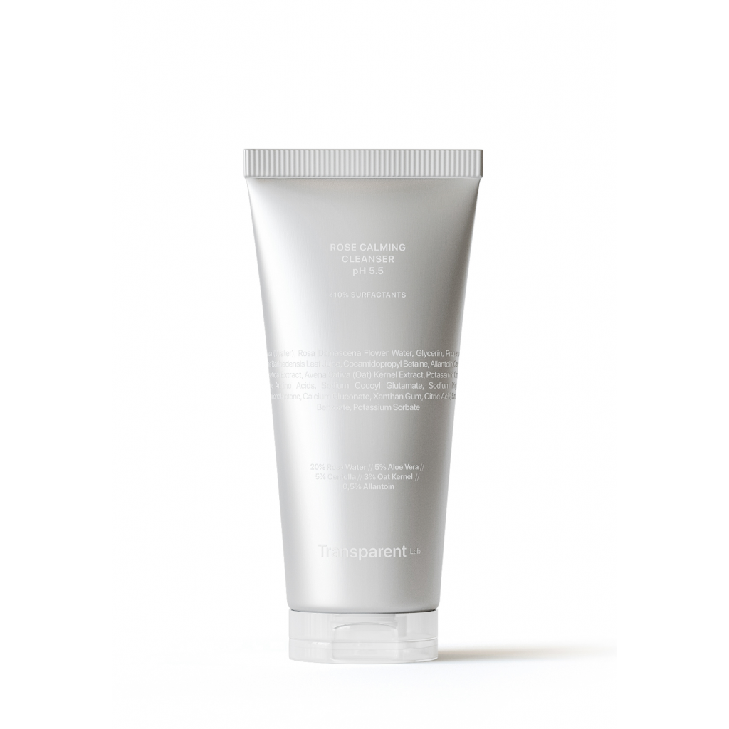 Transparent Lab Rose Calming Cleanser pH 5.5 – засіб для очищення чутливої шкіри. Transparent умивальник відноситься до категорії веганської продукції зі статусом «cruelty-free», яка не тестувалася на тваринах.