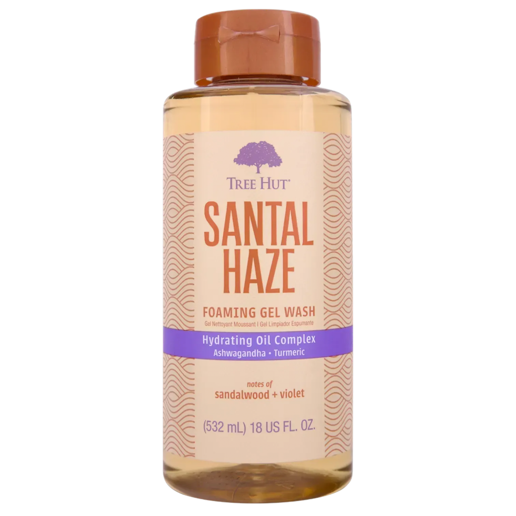Tree Hut Santal Haze Foaming Gel Wash — гель для душу з теплим ароматом та нотками гвоздики, сандалового дерева та кедра. Пориньте в розкішну піну, яка живить шкіру і залишає стійкий аромат. Гелі для душу Tree Hut насичені зволожуючим олійним комплексом, багаті антиоксидантами, маслами авокадо, ківі та апельсина.