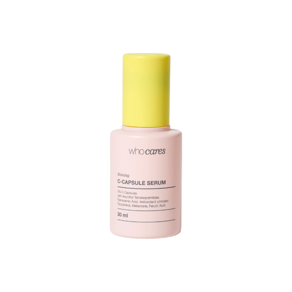 WhoCares Shining C-Capsule Serum — мультивітамінна сироватка для обличчя з інкапсульованим вітаміном С. Легка антиоксидантна сироватка для рівного тону, зволоження, м’якого сяяння шкіри й захисту від стресів довкілля. Легка, стабільна формула з інкапсульованим вітаміном С й потужними антиоксидантами (C + E + ферулова кислота) допомагає вирівняти тон, зволожити, повернути природний блиск і зміцнити захисний бар’єр шкіри.