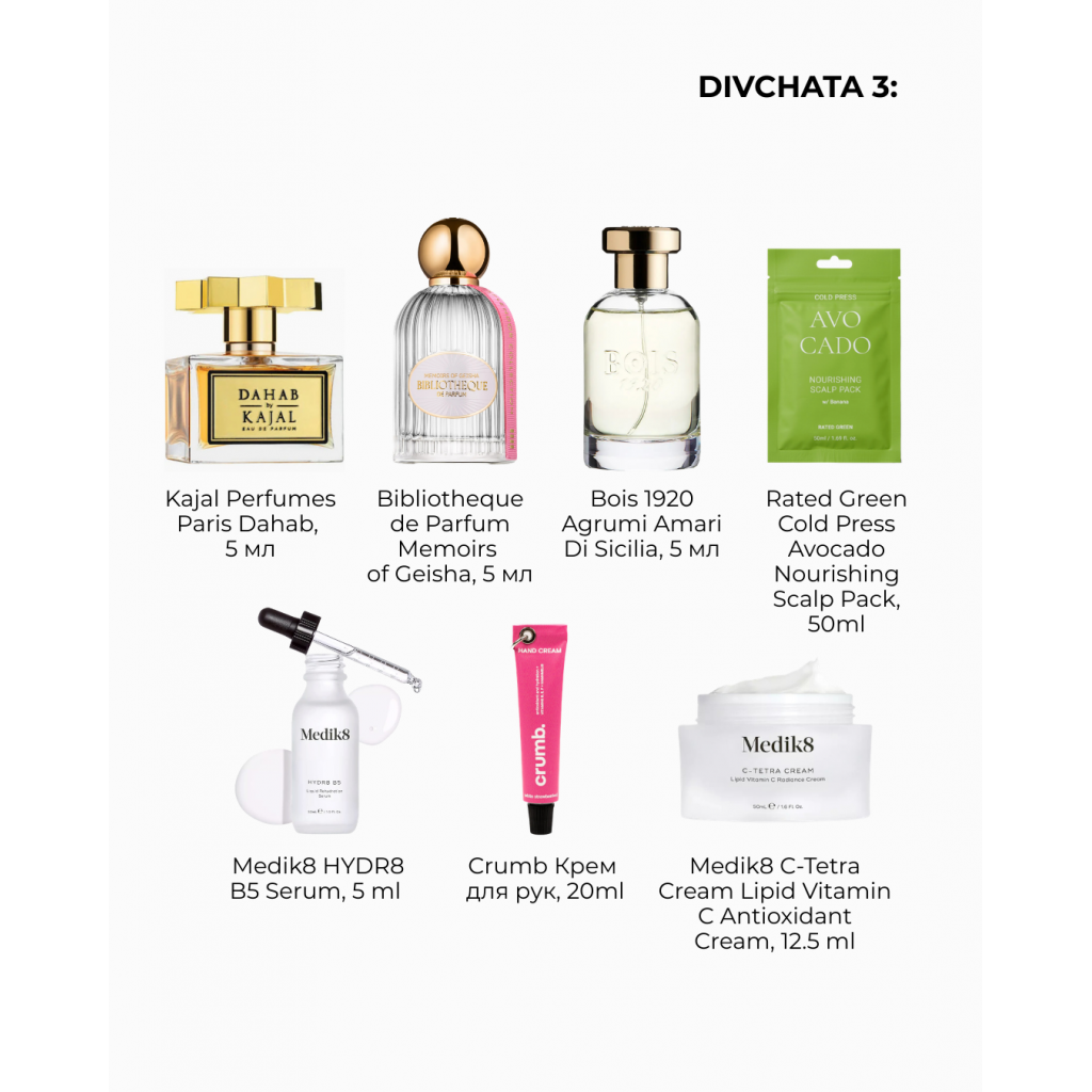 Збагачена натуральним маслом авокадо холодного віджиму і екстрактом банана маска глибоко живить і зволожує виснажену і суху шкіру голови, насичуючи її корисними елементами. Надає волоссю здорову м'якість по всій довжині, залишаючи на волоссі ніжний аромат банана. - Kajal Perfumes Paris Dahab (5 мл) — парфумована вода.